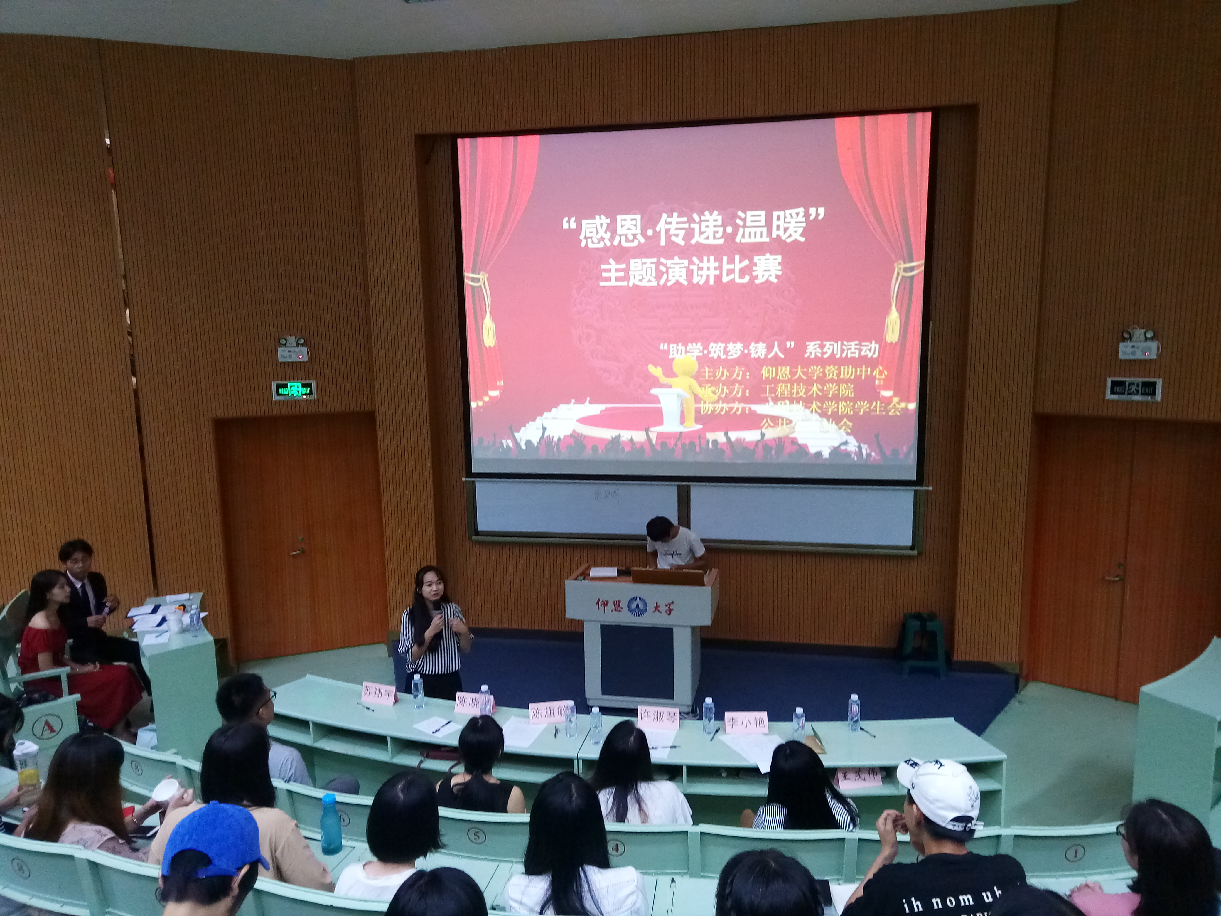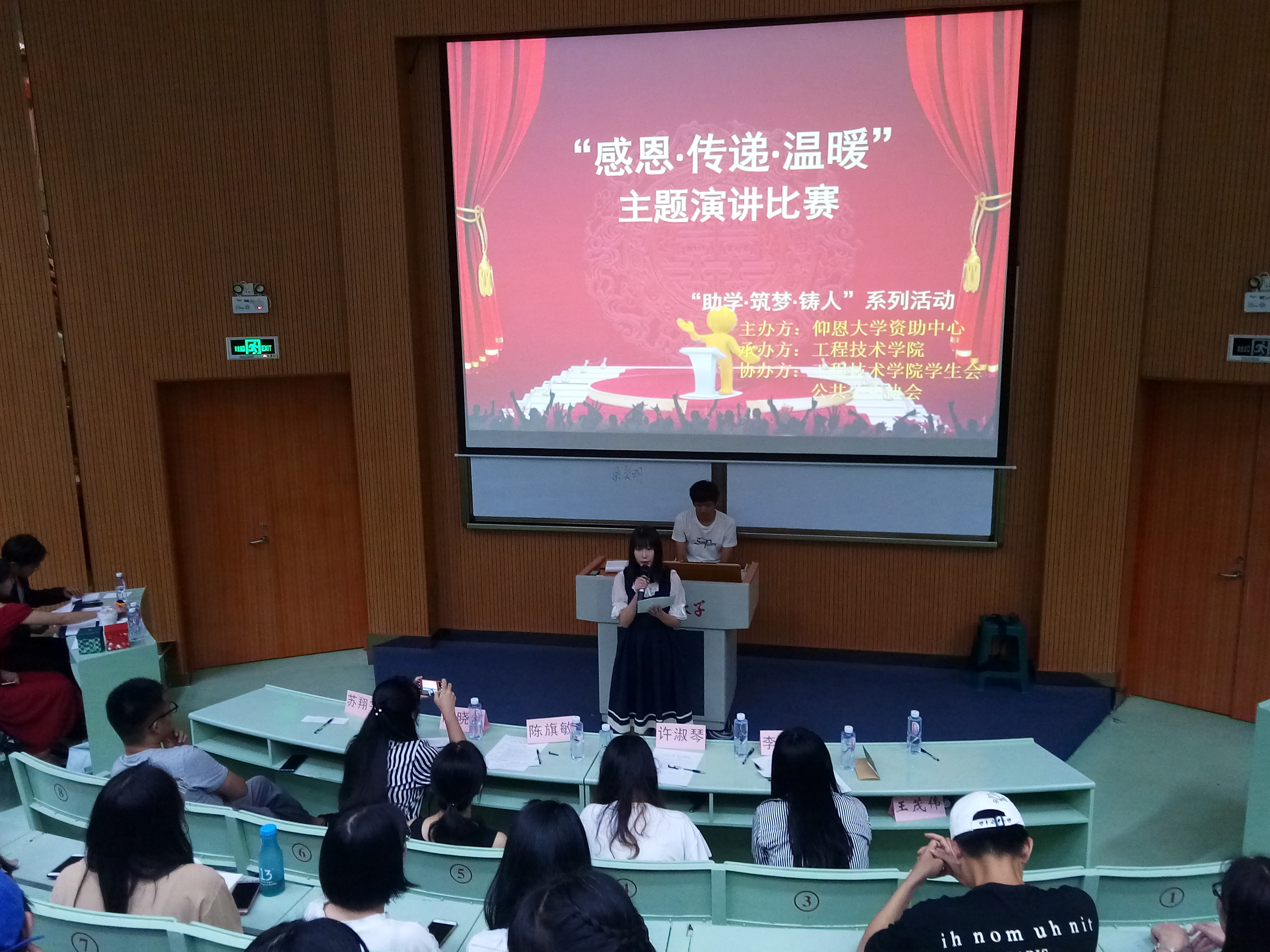 6月6日晚上7点半beat365官网唯一在旧区和昌乐之讲堂举行了“助学·筑梦· 铸人” 系列演讲活之“感恩.传递.温暖”主题演讲比赛。出席此次活动的嘉宾有学生会指导老师陈晓红、院团委书记许淑琴、学务秘书陈旗敏、教师李小艳。