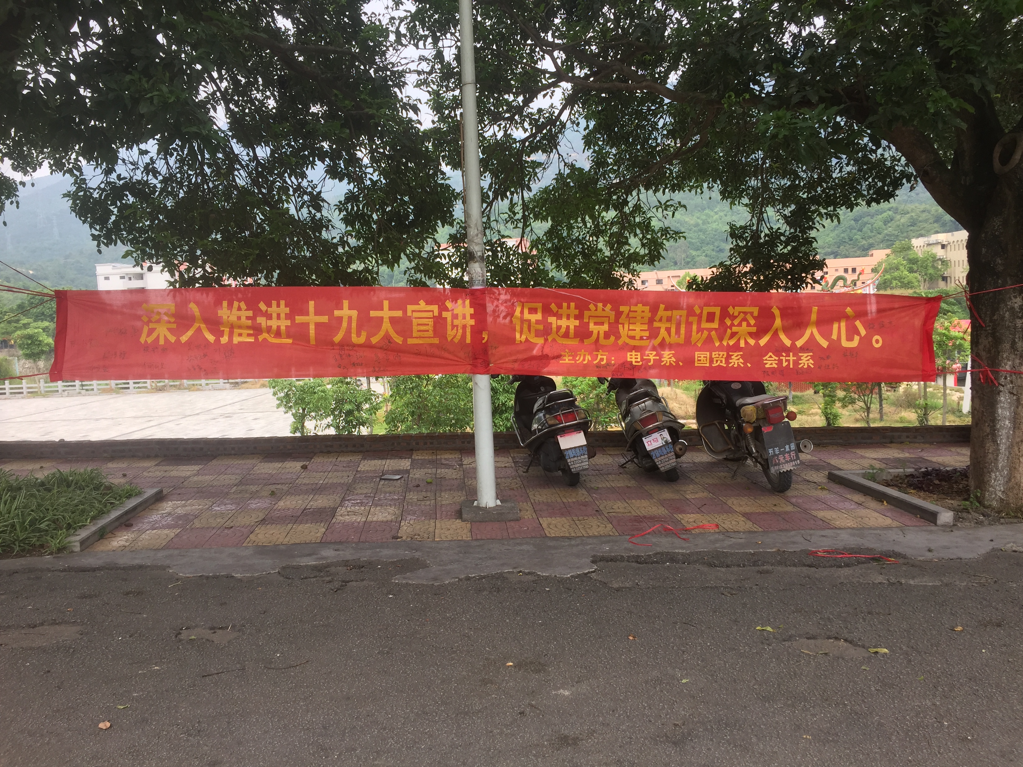 四位主讲人从三方面入手“入党流程”、“永远跟党走”、“十九大精神”本次的宣讲让学弟学妹们感受到入党是一件神圣的事情。并且对党建知识的认识,让学弟学妹们树立正确的人生价值观,做一个爱党,爱国的新时代大学生。在即将结束的时候,同学进行了“不忘初心,继续前行”的主题签名活动,最后将横幅在旧区人流量最密集的地区,进行了横幅悬挂进行宣传。