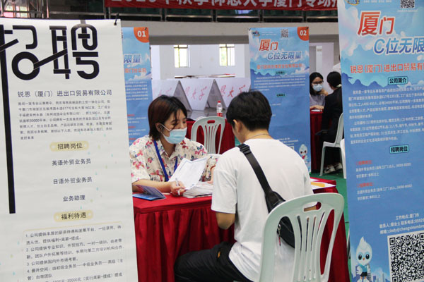 招聘会共吸引了厦门中闽百汇商业有限公司、安踏集团、雨果网(厦门)跨境电商有限公司等55家企业来校招聘,提供了1990余个就业岗位,主要涉及对外贸易、文化传媒、房地产、教育、金融、电子商务、计算机通信等行业领域,与我校学科专业契合度较高。