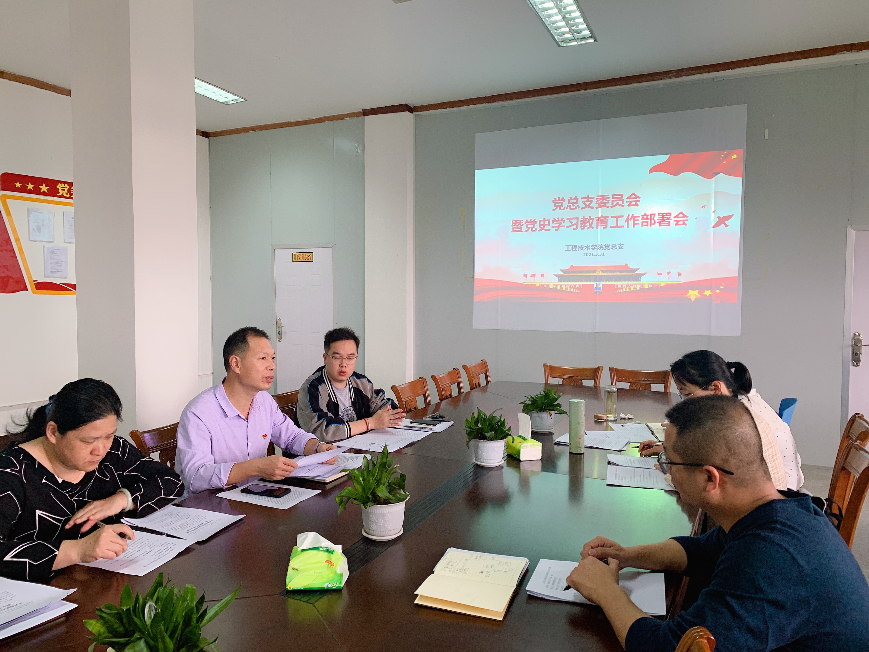 为迎接建党100周年,推动学院党史学习教育扎实有效开展,3月31日下午,beat365官网唯一党总支召开党史学习教育工作部署会,学习贯彻落实习近平总书记在党史学习教育动员大会上的重要讲话精神,学习校党委关于开展党史学习教育的通知精神,部署学院党史学习教育工作。学院党总支书记曾凤生、常务副院长金承勇、副院长李影及全体党总支支委出席了会议。