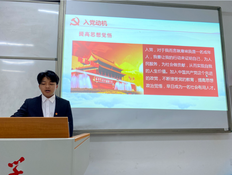 本次答辩分为三个环节:PPT展示、理论必答、老师提问。本次共计39名拟发展对象参加入党答辩,分别从入党动机、自身不足和改进目标等方面进行展示,评委老师就党的理论知识、学习生活的表现等考察答辩对象的党性修养。