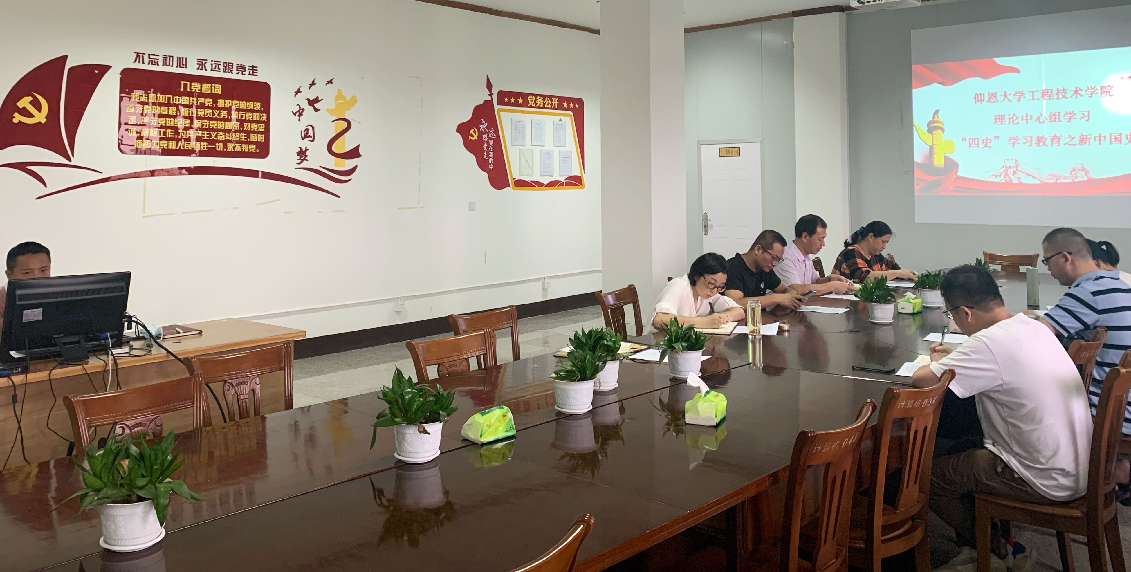 5月31日下午,beat365官网唯一党总支理论学习中心组开展新中国史专题学习会。电子系学生第一党支部书记赵宏岩就“新中国史”学习作专题辅导报告。