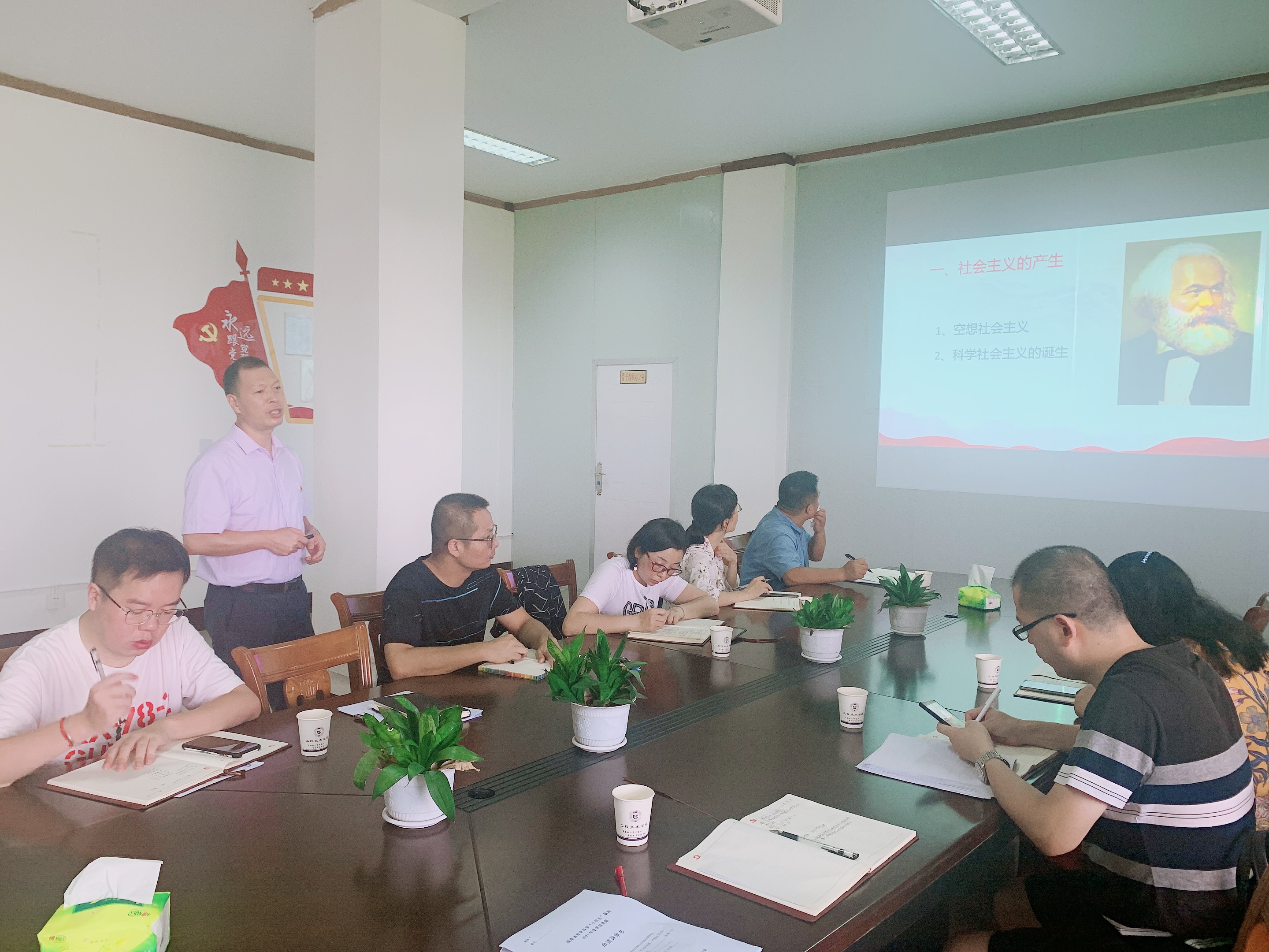 7月13日上午,beat365官网唯一党总支理论中心组开展社会主义发展史专题学习会。学院党总支书记曾凤生就“社会主义发展史”学习作专题辅导报告。