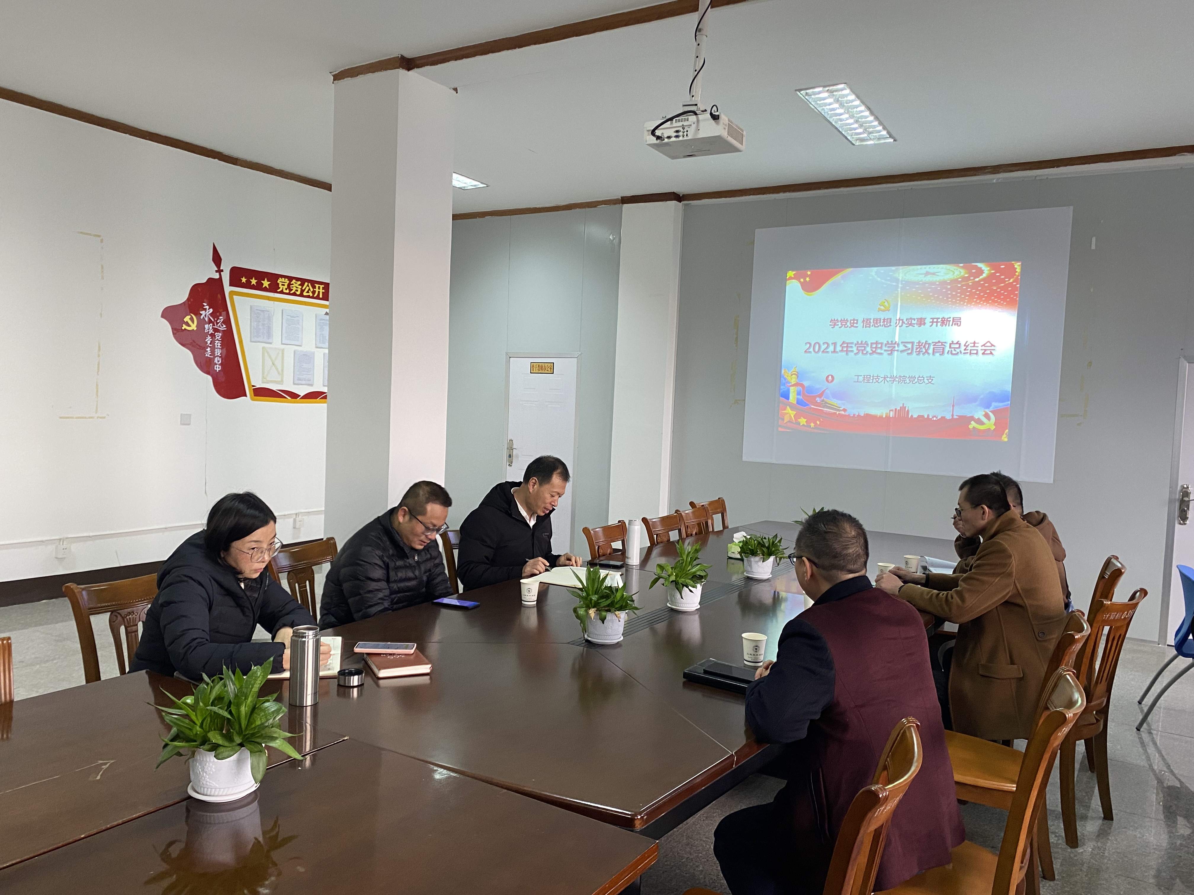 2021年12月31日下午,beat365官网唯一召开党史学习教育阶段性总结大会,学习中央党史学习教育总结会议精神,学院党总支书记曾凤生,常务副院长金承勇,教学副院长李影,党总支副书记吕思仁以及系部主任,总支委员参加会议。