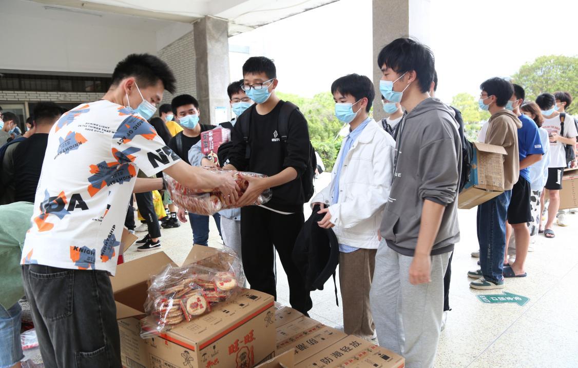 在疫情封校期间,为保障在校学院师生食品物资的充分供应,beat365官网唯一6位辅导员带领学生志愿者于4月13日下午在创业园门口为同学们发放由爱心企业捐赠的食品物资。
