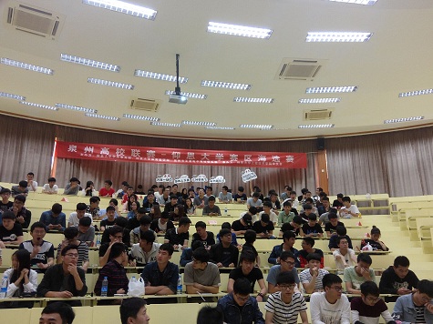 大赛初赛采用积分制,共有来自七个学院的36支队伍参加比赛,由抽签分为四组,每组的队伍分别对战,积分靠前的两队晋级八强赛;八强赛抽签决定对手,采用三局两胜制,获胜方晋级;最后的决赛由四强当场对决。现场气氛热烈,参赛者们相互团结,相互鼓励,本着“友谊第一,比赛第二”的原则,进行了激烈的竞技。经过层层的选拔淘汰,最后获得前三名的是“傲娇男神队”、“是不是很气队”“Rocket队”,泉州市王者电子竞技俱乐部的工作人员为他们颁发奖金,荣誉证书以及市赛晋级资格。