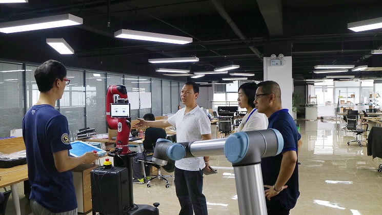 福建(泉州)哈工大工程技术研究院办公室主任刘惠婷对我们的到访表示欢迎,并详细介绍了研究院的成立背景、研究专长、政企院合作项目等,并带领一起参观了正在研究的服务机器人、工业机器人等项目。