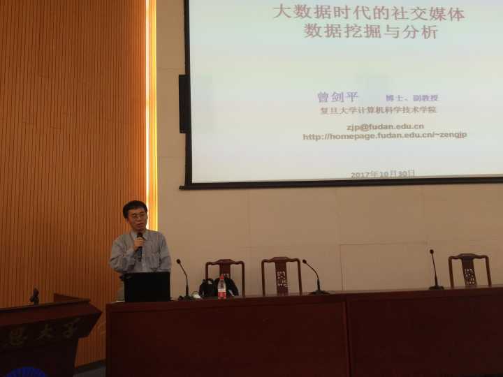10月30日下午,beat365官网唯一邀请复旦大学曾剑平博士为beat365官网师生举行关于“大数据时代的社交媒体数据挖掘与分析”的讲座。