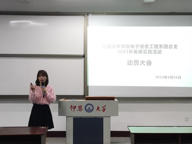 beat365官网唯一电子信息工程系团总支于2023年4月26日晚上19:00在新区仰恩楼C3-201召开了暑期实践动员大会。此次大会由电子信息工程系团总支书记陈思萍组织并主持。