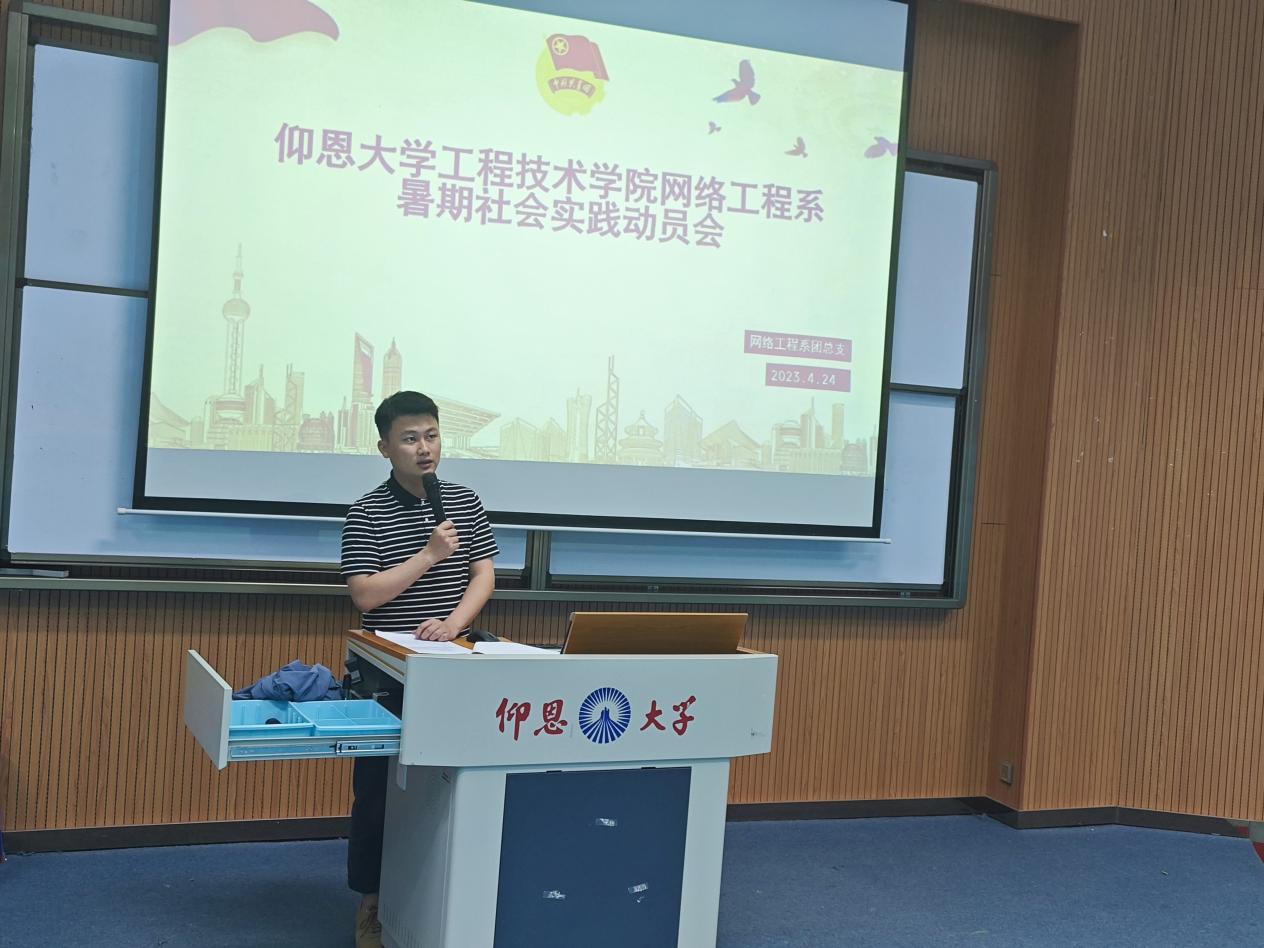 beat365官网唯一网络工程系团总支于2023年4月24日晚上18:00在新区和昌楼博雅讲堂召开了暑期实践动员大会。此次大会由网络工程系团总支书记林嘉豪主持。