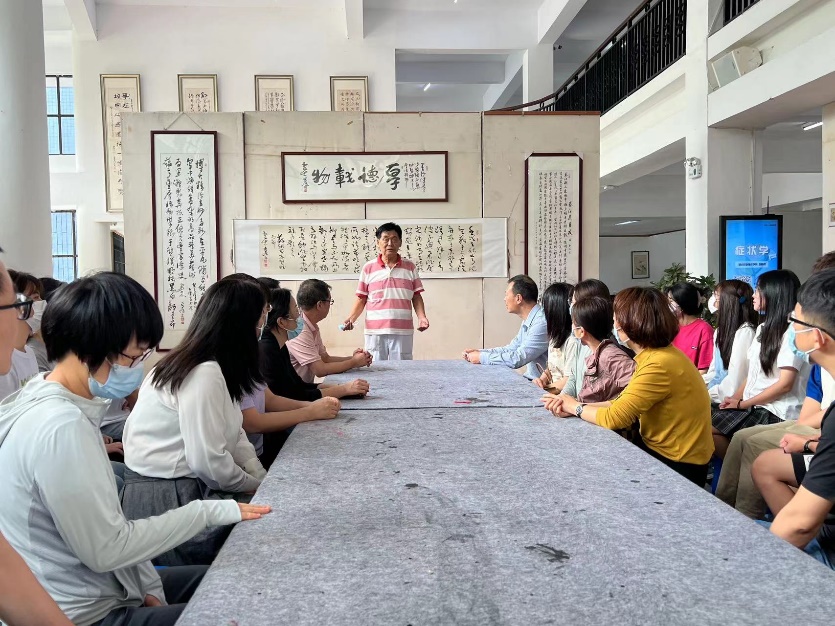 为深入学习贯彻习近平新时代中国特色社会主义思想主题教育,增强文化自信,弘扬优秀传统文化。5月24日下午,beat365官网唯一教工党支部组织全体党员开展主题党日活动,集体参观校书画协会在图书馆举办的书法展。