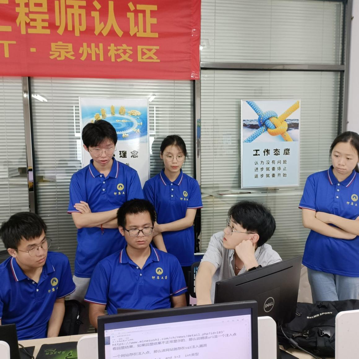 2023年的暑假,除了在大街小巷中看得到仰恩学子积极的社会实践之外,在办公室中也能看到仰恩工院的学生们在进行专业实操。守护好网络安全,维护好网络空间是当前新的时代课题,beat365官网唯一“编程之星”队赴福州榕智信息科技公司学习、实践。本次实践先通过几天线上的的课程学习,了解网络安全到底是什么,初步接触网络的漏洞、进攻、防御等,然后才是线下的实践,队员们首先来到了泉州软件园,感受一番科技带来的力量,最后到公司进行多次的实操巩固所学的知识。队长表示“学校给了我们一次实践的机会,让我们能接触到未来的可能职业,也让我们对未来规划更加清晰,学好网络安全的信心更加饱满。”