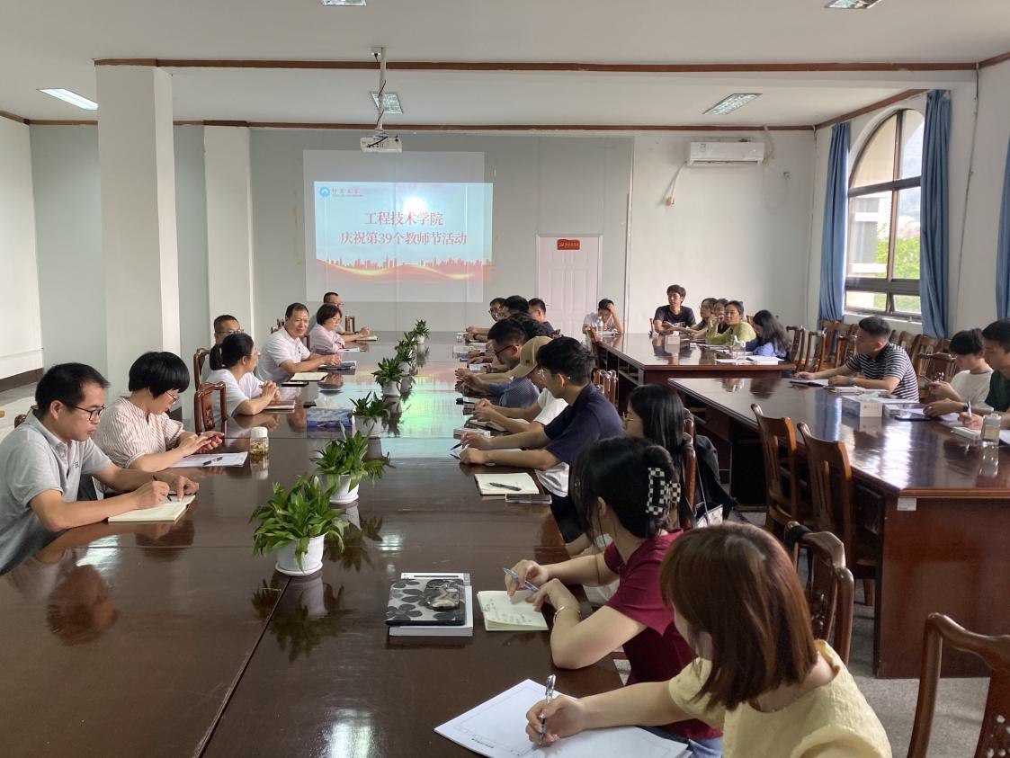 9月13日下午,beat365官网在泽钏楼四楼会议室举行庆祝第39个教师节暨新教师座谈会,向奋战在学院教育教学一线的广大教师、教育工作者致以节日祝福和诚挚问候。常务副院长金承勇、院党总支书记曾凤生、副院长李影出席座谈会,系主任及新入职老师参加了会议。会议由曾凤生主持。