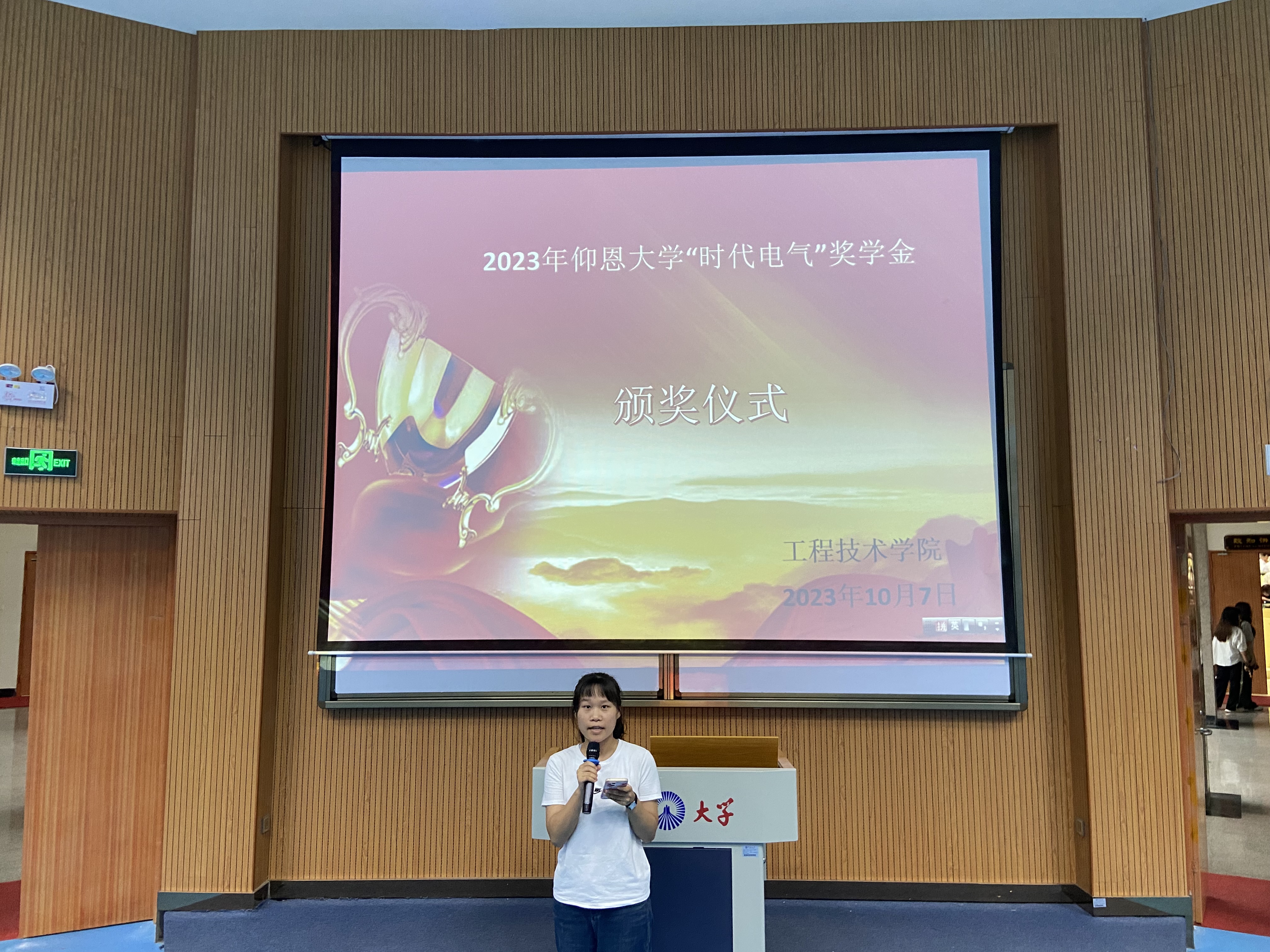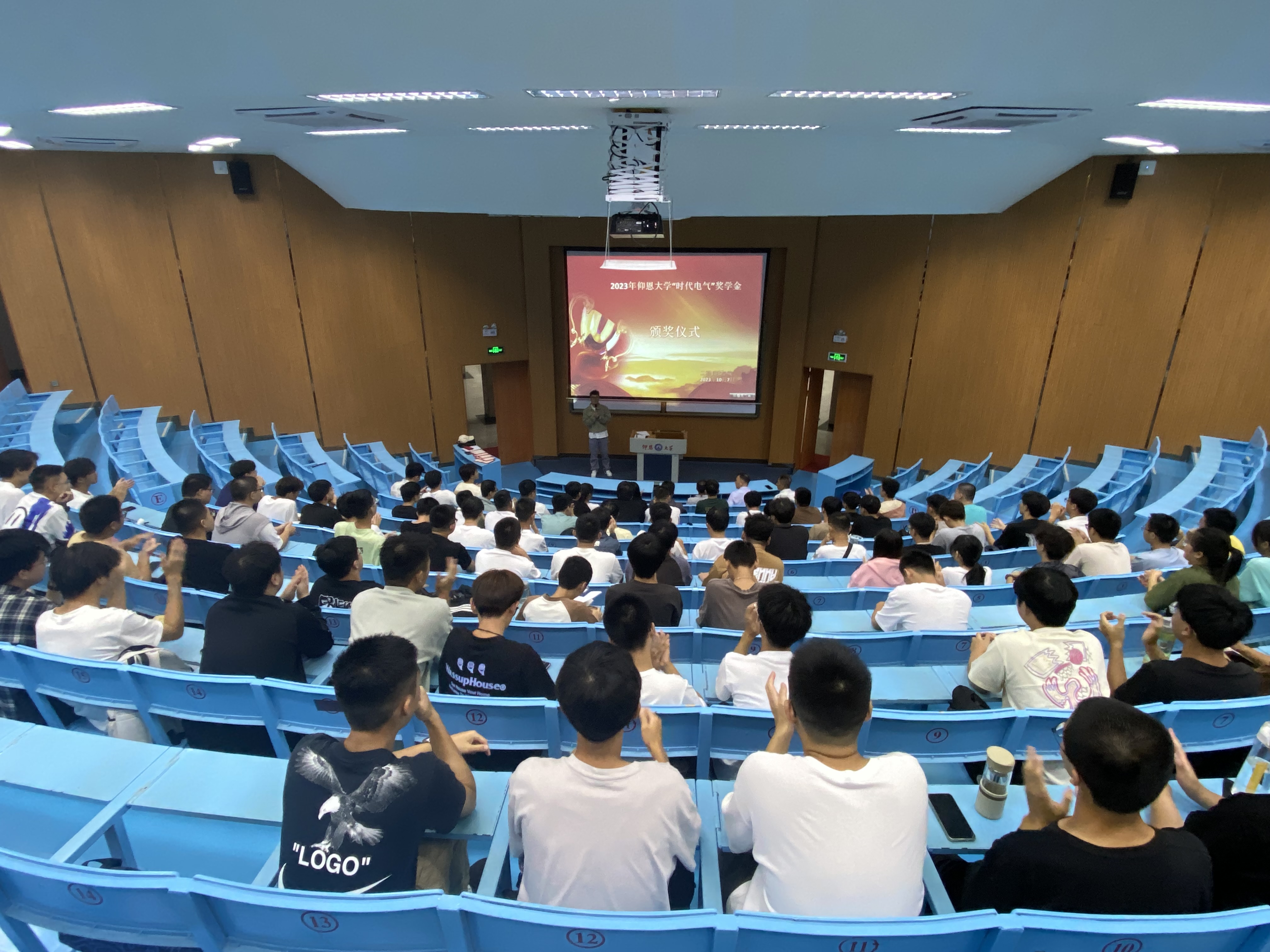 10月7日下午,beat365官网唯一第二届“时代电气奖学金”颁奖仪式在第一教学区和昌楼求是讲堂顺利举行。学院党总支书记曾凤生、电气工程及其自动化系主任陈永健老师、刘明真老师、辅导员蒋心益老师以及2023级电气系全体学生参加了本次活动。颁奖仪式由蒋心益主持。