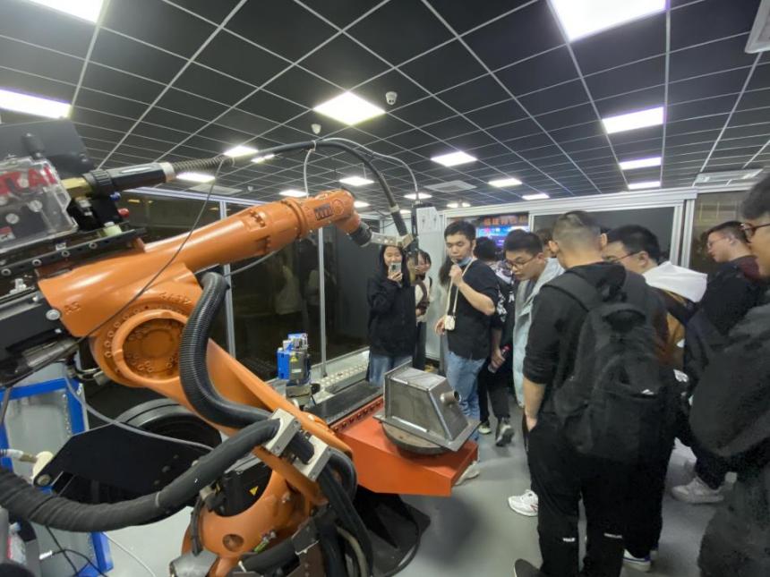 实习过程中,相关负责人带领学生参观了德国KUKA工业机器人车间、观看了工业机器人的宣传片(工业机器人在自动化生产车间的应用)、聆听了对工业机器人的典型案例的介绍。最后,现场师生与企业工程师进行交流互动,学生向工程师询问了专业相关知识,工程师也向同学们介绍了今后就业的技能要求及其它相关问题。