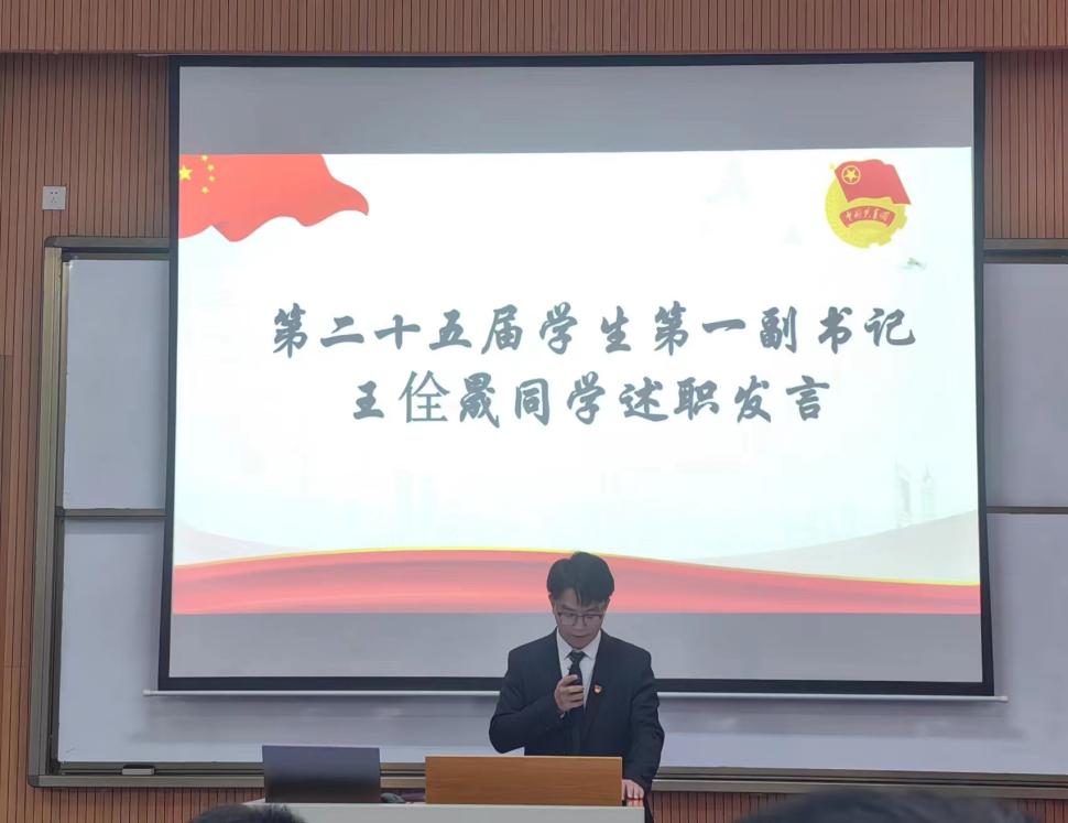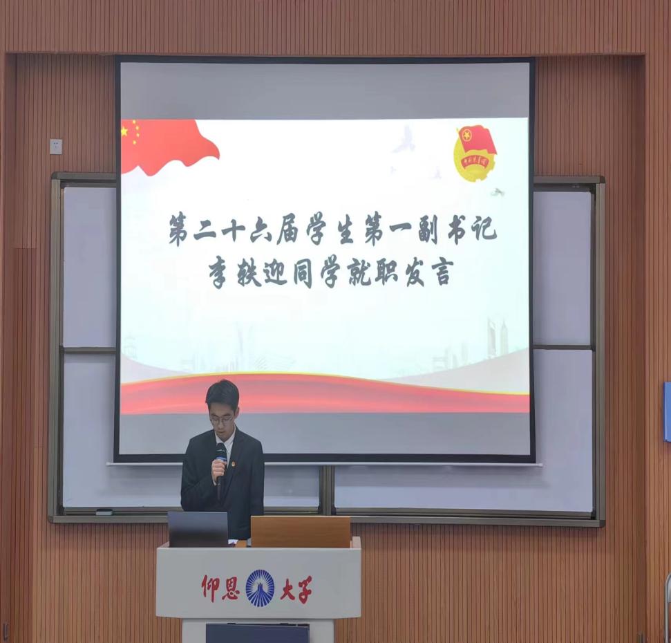 会上,第二十五届学生第一副书记王佺晟同学和第二十六届第一学生副书记李轶迎同学进行发言,分别进行述职和就职发言,对在团委任职期间的工作进行总结,也对今后工作提出了新的展望。接着,对团委这一年来在工作中认真负责的干部和书记颁发了奖状以表彰其突出贡献,并希望新一届干部干事们在今后的日子里为beat365官网团委工作做出积极的贡献。