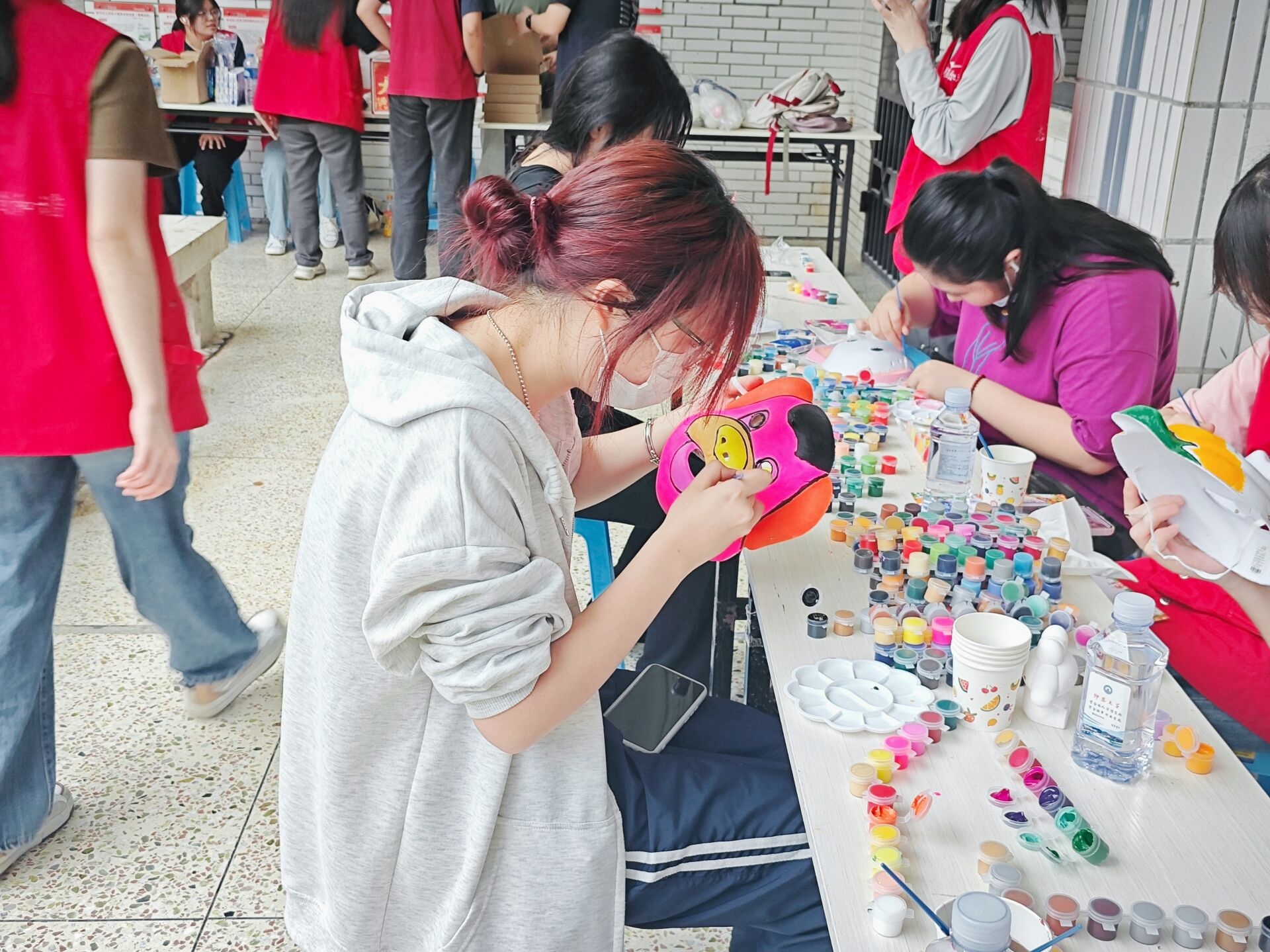 为了增加游园会的趣味性,本次活动创新采用了集章抽奖模式。学生们可以通过完成各种小游戏来收集印章,这些游戏包括陶瓷娃娃上色、画出心中的MBTI类型以及你问我答等。现场氛围热烈,欢声笑语不断,获得广大师生一致好评。