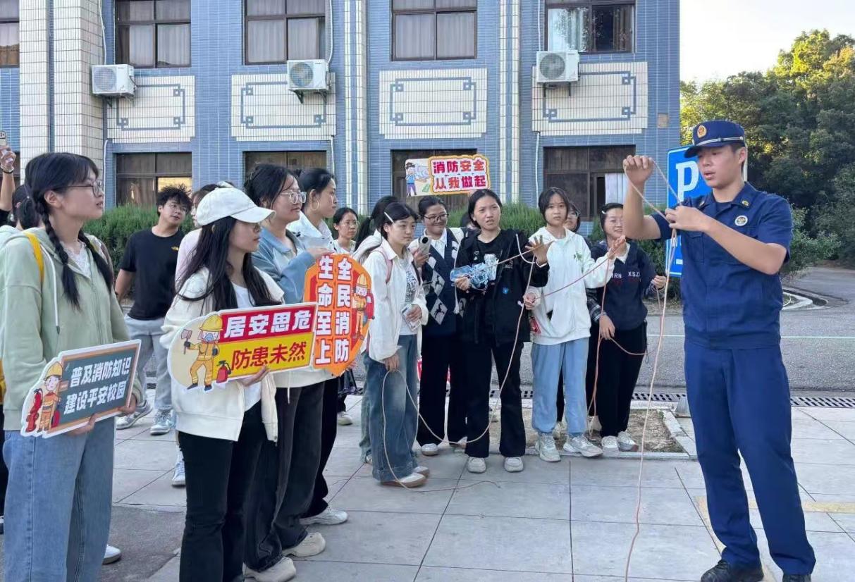 随着活动的开展,消防救援站队员在祥贤楼前详细讲解灭火器的使用方法和初期火灾扑救技巧,师生们亲身体验操作,增强了实践能力。许多同学表示,这是他们第一次亲手操作灭火器,感觉既紧张又兴奋,同时也更加坚定了对消防安全重要性的认识。此外,消防员还传授的逃生绳结技巧也是此次活动的亮点之一,提升了师生的自救能力,不少同学还表示要将学到的绳结打法教给家人和朋友,共同提高应对突发事件的能力。