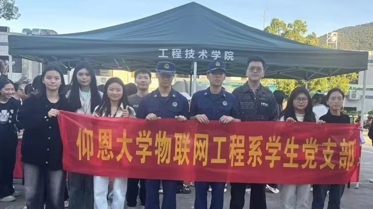 物联网工程系学生党支部与马甲消防救援站队员合影留念