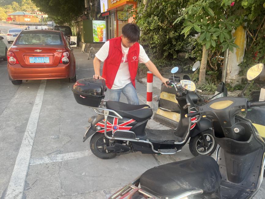 交通安全问题关系到每个人的生命安全,关系到社会的和谐稳定。作为共产党员,我们更应该以身作则,树立文明交通的榜样。规范停放,共建文明城镇,在马甲镇街道附近,志愿者亲自将随意停放的非机动车搬至规定地点有序停放,特别是对于堵塞消防通道的车辆进行清理。