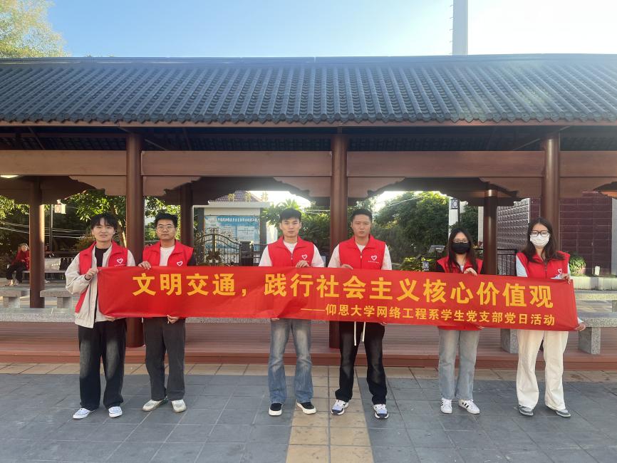 随着社会的快速发展,交通问题日益凸显,安全、有序的交通环境成为我们每个人的期待。为提升党支部全体党员的交通安全意识,营造文明交通的良好氛围,网络工程系学生党支部于1030日下午在马甲镇开展了一场以“文明交通,践行社会主义核心价值观”为主题的党日活动。旨在提高党员和市民的文明交通意识,减少交通违法行为,通过实际行动,发挥党员的先锋模范作用,增强党组织的凝聚力和战斗力。