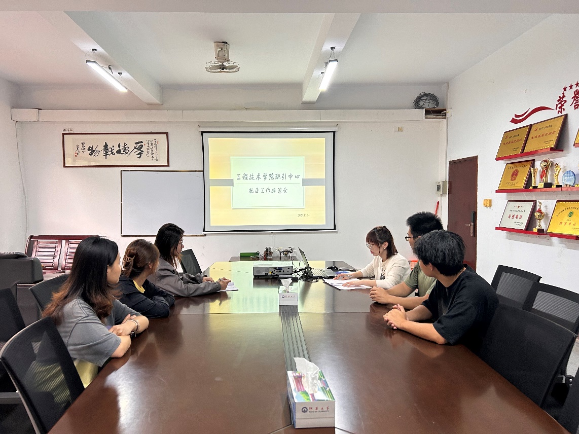 本次会议由职引中心负责老师陈思萍主持,会议伊始,陈思萍老师对职引中心的五个重要部门,即就业部、综合部、外联部、宣传部以及文秘部,进行了部门分工,明确各自职责,确保后续工作能够有条不紊地开展。围绕接下来一段时间的工作重点,布置了具体任务安排。例如每周的岗位收集,汇聚丰富多样的就业岗位信息;宣传部推出高质量就业宣传推文,为学生传递最新就业资讯;同时,各部门还要通力协作,积极开展就业政策宣传工作,让学生们能够及时、全面地了解各项利好政策,助力他们更好地把握就业机会。最后大家一起讨论如何更好的举办招聘会,从招聘会场地的科学合理布置,到活动现场人员的高效调动,力求打造一场高质量、有成效的招聘会,为学生与用人单位搭建优质的交流对接平台。