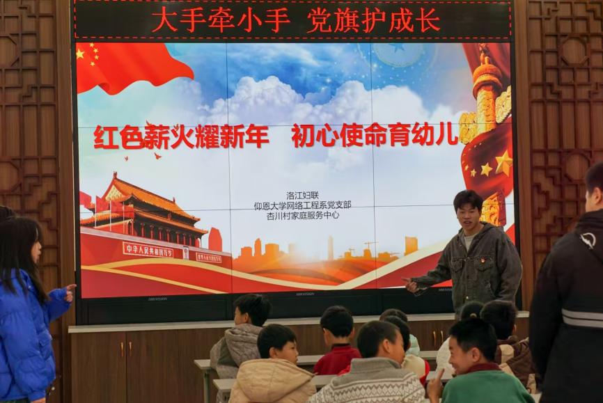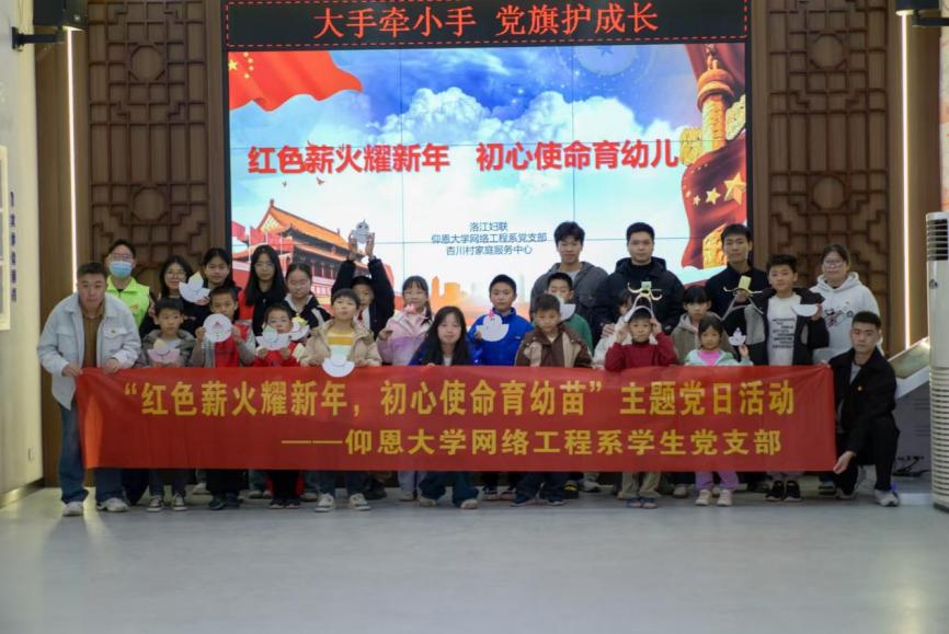 12月21日上午,文韬社区联合网络工程系学生党支部,在杏川社区开展“红色薪火耀新年 初心使命育幼儿”主题党日活动,活动由党支部全体学生党员,文韬社区学生党员代表以及青年志愿者参加。