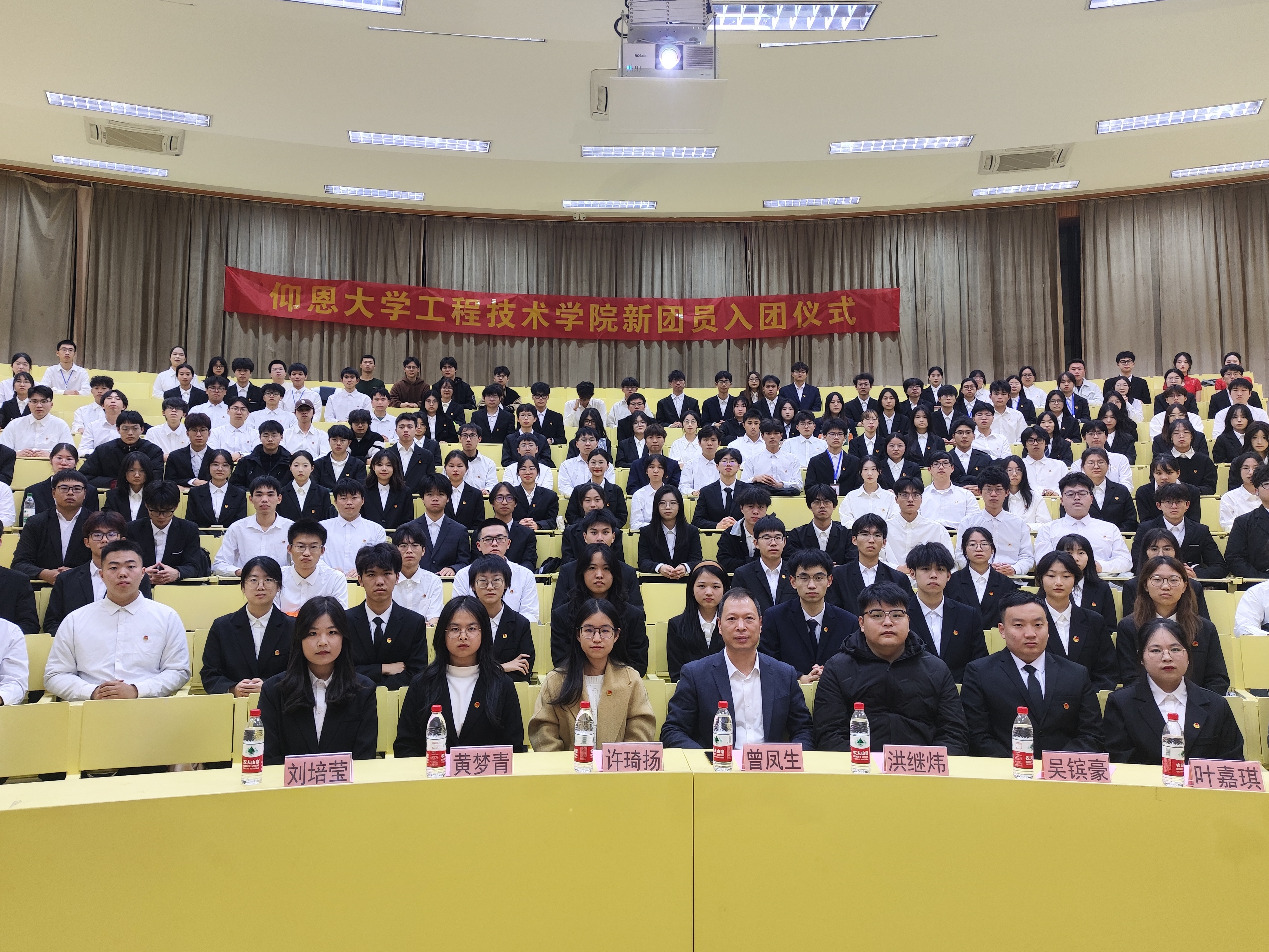 为增强新团员的荣誉感和责任感,加强团组织凝聚力,2024年12月26日下午,beat365官网唯一在新区和昌楼惟勤讲堂举行“青春挺膺担当,强国奋斗有我”新团员入团仪式。beat365官网唯一党总支书记曾凤生老师、计算机系团总支书记许琦扬老师、电子系团总支书记洪继炜老师及本学期全体新团员、学生代表们共同参加。