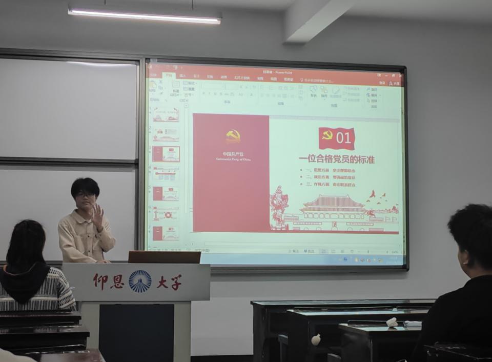 我院人工智能系学生党支部了一场入党积极分子讨论学习会,旨在加强对入党积极分子的培养和教育,提高其政治素养和党性认识。本次入党积极分子讨论会于2025年4月10日在仰恩楼顺利召开,讨论会围绕为什么说“党员是群众中的一面旗帜”“对照党员标准,你认为大学生入党积极分子最容易忽视的短板是什么”“你身边有哪些优秀党员榜样”等主题展开,取得了良好成效。