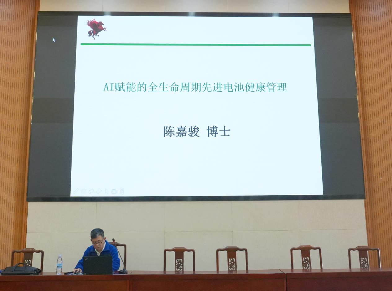 本次讲座中,陈嘉骏博士以“AI赋能全生命周期电池健康管理”为核心,系统解析了锂电池技术的核心挑战与突破方向。他提出,电池健康管理的本质是“材料-设计-制造-管理”的跨尺度协同优化,并通过三个维度展开论述:一是材料创新,从二维层状结构到三维隧道结构的突破;二是AI驱动的电池健康管理(PHM)体系,针对电池容量再生、非线性衰退等痛点,团队开发了多模态AI融合模型,三是全链条技术闭环,从实验室到产业化的跨越。他特别强调,AI不仅是工具,更是重塑电池设计范式的底层逻辑——“未来的电池将从‘经验试错’转向‘数据驱动’,而AI正是这场变革的核心引擎。”