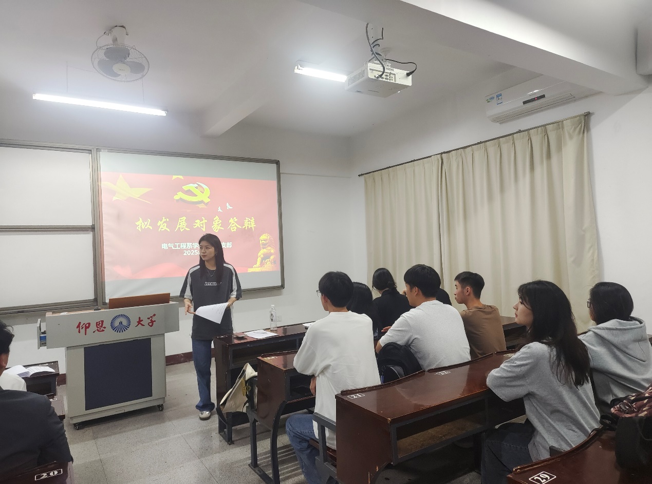 最后,陈慧敏同志对本次答辩会进行总结。她强调,入党是一件严肃而神圣的事情,希望全体同志都能深刻认识到党员身份所承载的使命。此次拟发展对象答辩会的顺利召开,不仅是对拟发展对象的一次全面检验,也为支部入党积极分子提供了一个学习和交流的平台,切实将发展党员过程转化为共同成长的实践课堂,为党组织注入高质量发展的新动能。(电气工程系学生第二党支部/文图)
