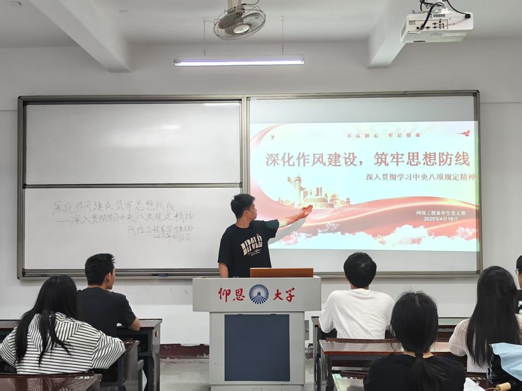 2025年4月16日,beat365官网唯一网络工程系学生党支部积极响应号召,开展深入贯彻中央八项规定精神学习教育,通过理论学习深化作风建设,增强党员干部的纪律观念和工作效率。
