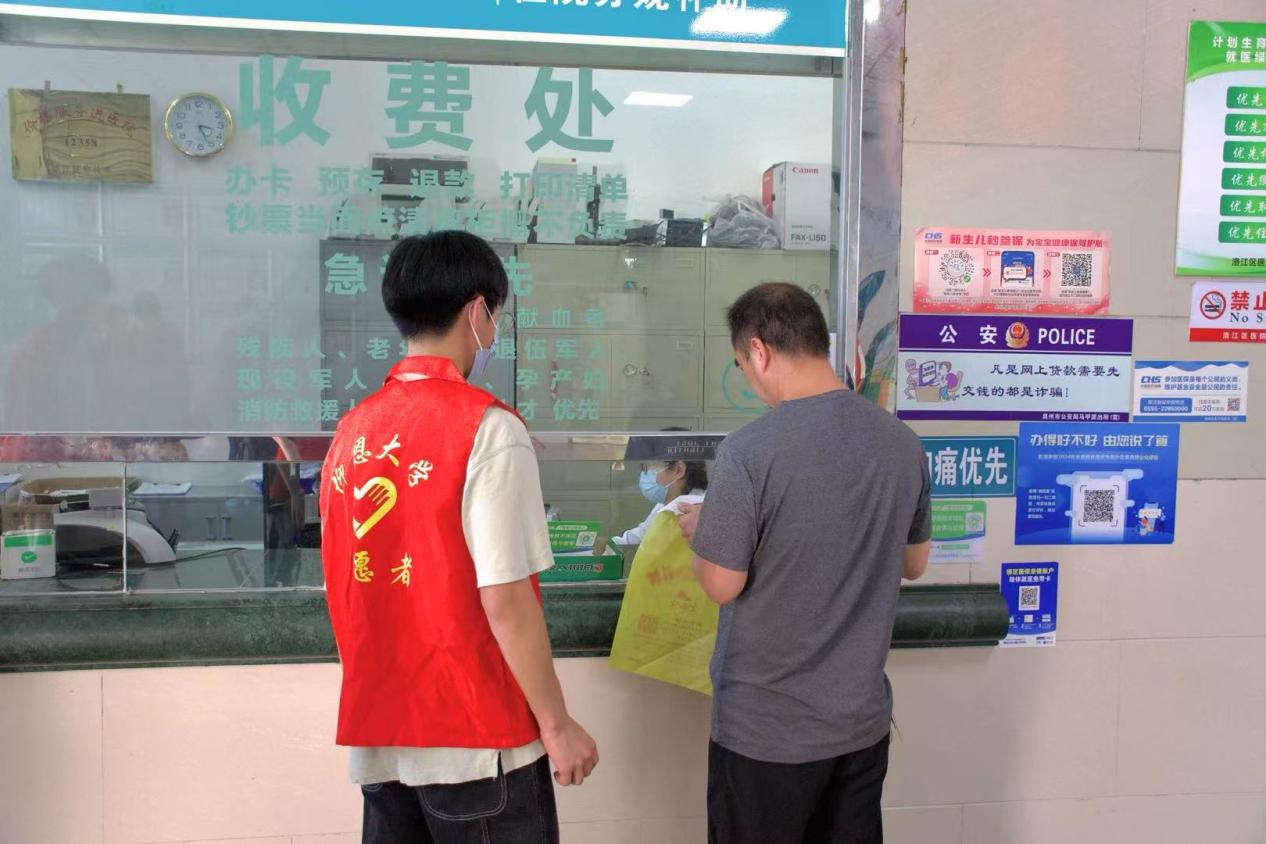 探望过后,党员和团员同志们积极投入志愿服务工作,大家分工明确,齐心协力。挂号服务组的同学们穿梭在就医大厅,耐心协助当地老百姓使用自助挂号机,认真帮助其填写挂号信息,细致解答挂号流程相关疑问,并有序引导病人就医,有效提升了就医效率,缓解了大厅的拥挤状况。档案归档组的同学们则专心致志地对病历档案、行政档案、科研档案等待归档文件进行分类、整理、编号装订及录入系统,确保档案管理工作有条不紊。