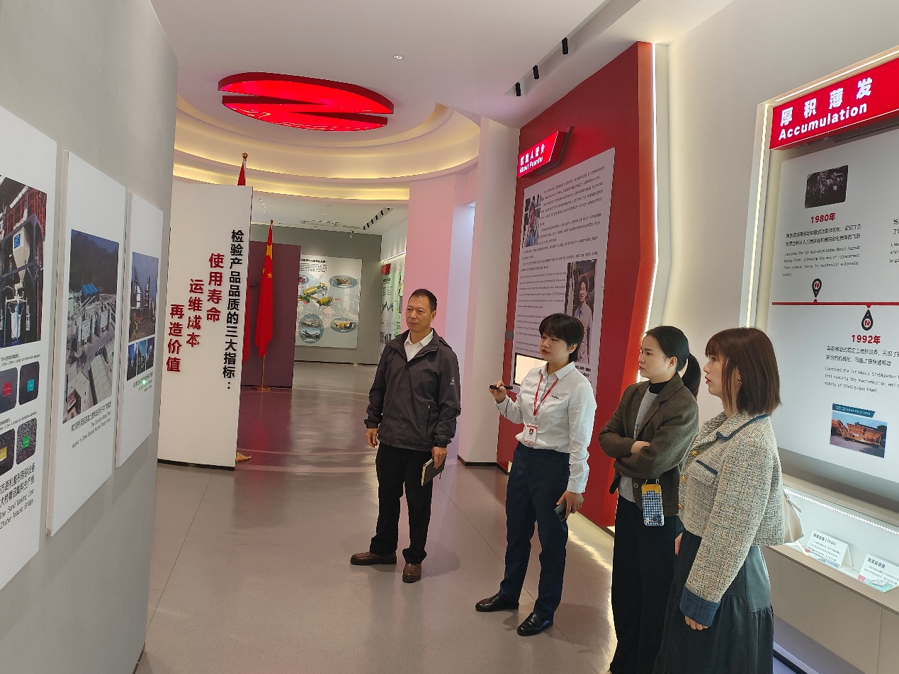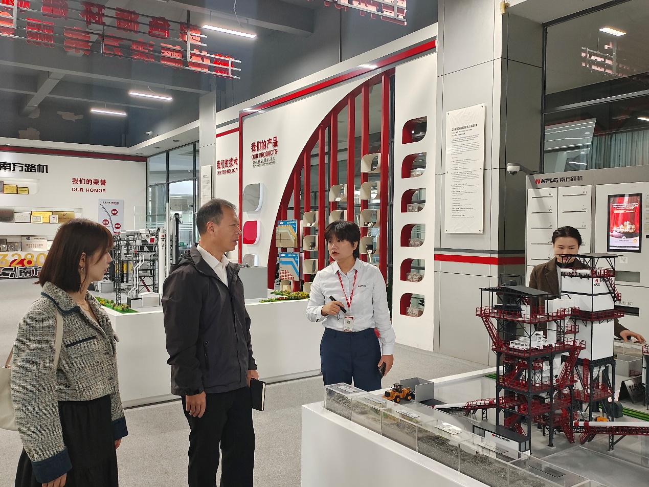 在福建南方路面机械股份有限公司,人事经理李欢热情接待学院团队并带领一行人参观企业数字展馆、培训学院等区域。参观过程中,李欢详细介绍了南方路机在路面机械研发、生产制造及市场应用领域的成果,尤其是在智能化、绿色化装备研发方面的突破,让学院团队充分了解企业技术实力与发展方向。