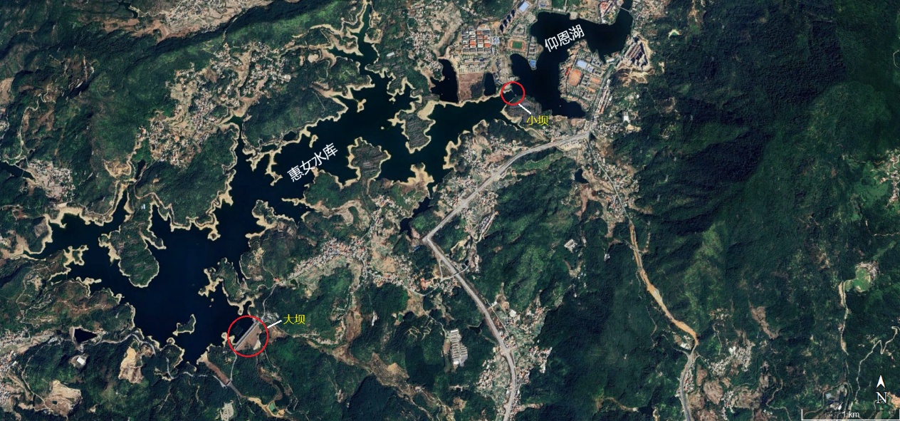 (仰恩湖和惠女水库卫星图)