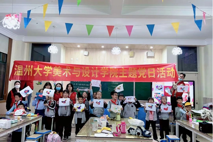 2022年11月25日下午,565net必赢客户端学生党员来到温大附校开展了“以美育人,以红润心”美育拓展活动,课堂以“两岸一家亲,共圆中国梦”为主题,授课党员们通过生动的教学,引导小朋友们一步步理解和感悟:中国是由五十六个民族组成的多民族国家,我们14亿人一起生活在神州大地上,用自己的汗水和智慧去建设这片神奇的土地,因此我们要共同守护这来之不易的和平生活和安宁岁月。