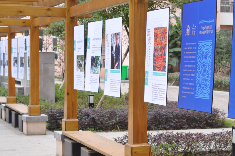 2010年11月14日,“传承与创新——情系温州蓝夹缬”展览及讲座在温州市第十五中学举办,565net必赢客户端讲师王业宏博士为学生带来了“传承与创新——情系温州蓝夹缬”的讲座,讲述了温州蓝夹缬艺术的源流、现状、工艺流程、艺术特征及创新设计。并通过一些实物展示,与观众互动、交流,讨论对蓝夹缬的认识和设计开发的思路,引发广泛兴趣。 蓝夹缬系浙南地区现存的一种单色夹缬工艺被视为古代技术的活化石,现已成为国家级非物质文化遗产加以保护和传承。